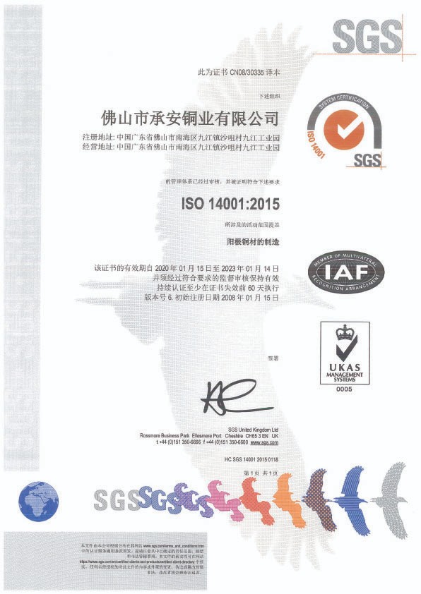 ISO14001:2015(佛山市承安集團股份有限公司)