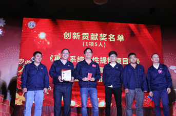 上圖:董事長(cháng)周騰芳為獲得“創(chuàng )新貢獻獎”團隊頒獎